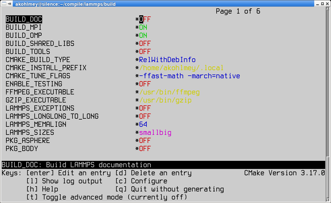 All details about features and settings for CMake are in the CMake online documentation. We focus below on the most important aspects with respect to compiling LAMMPS.